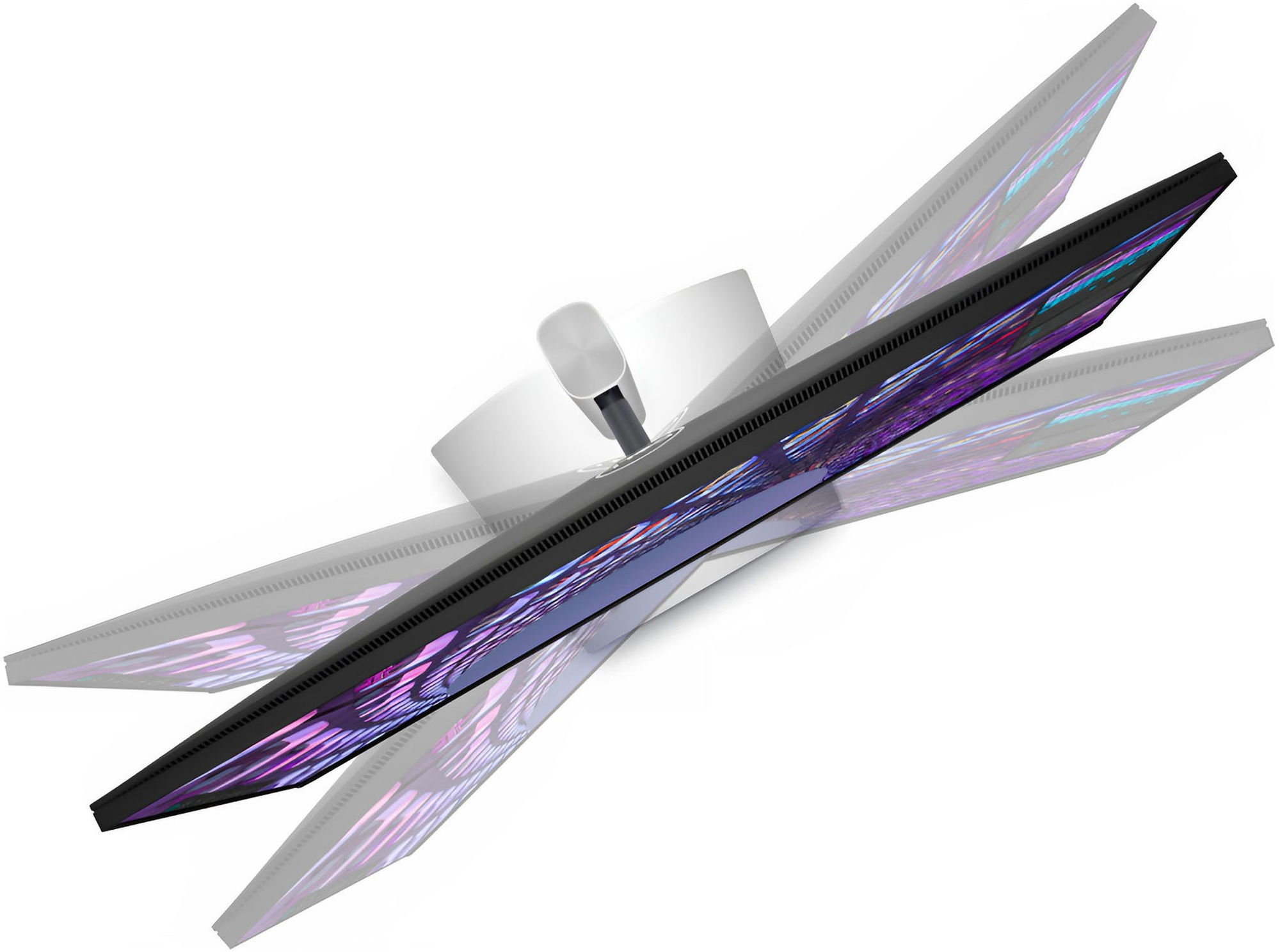 L'écran est ajustable en hauteur : il peut monter ou descendre pour se positionner en face de vos yeux et augmenter votre confort d'utilisation. L'écran est inclinable : il peut osciller pour s'orienter vers le haut ou vers le bas. L'écran est rotatif : vous pouvez l'orienter vers la droite ou vers la gauche sans avoir à déplacer son pied. L'écran n'est pas pivotant verticalement.
