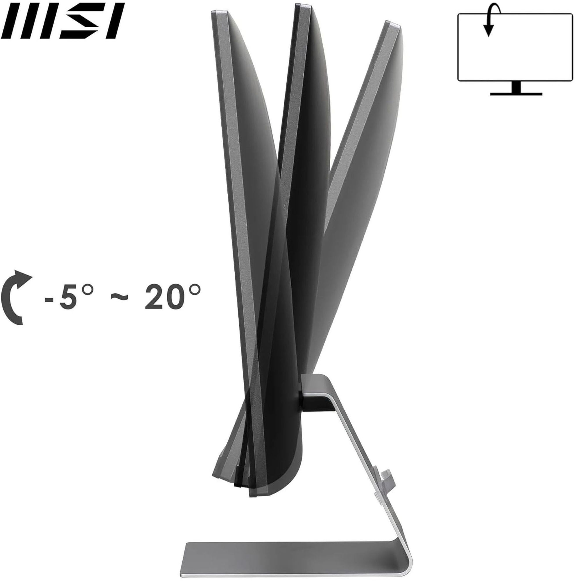 L'écran n'est pas ajustable en hauteur. L'écran est inclinable : il peut osciller pour s'orienter vers le haut ou vers le bas. L'écran n'est pas rotatif. L'écran n'est pas pivotant verticalement.